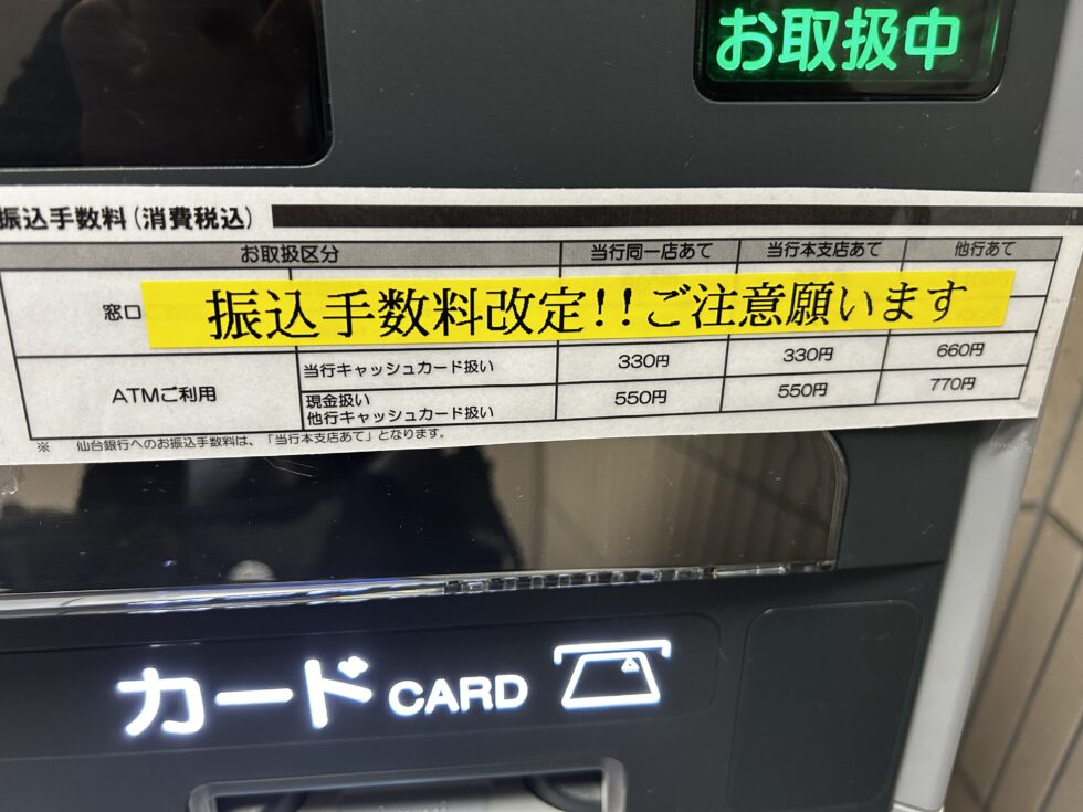 なんと、銀行の振り込み手数料が値上げになっておりました・・・。