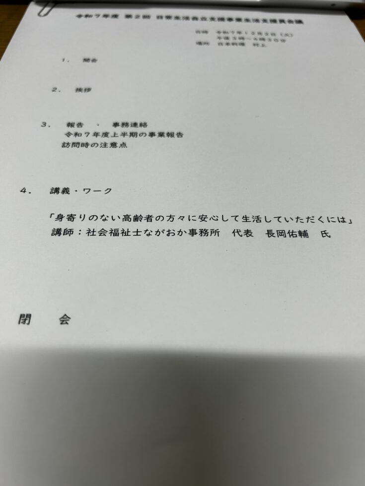 仲間というか諸先輩方に、失礼ながら身寄りのない高齢者の方々の支援についてお話しさせていただきました。